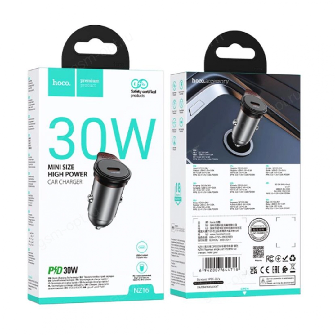 Автомобильная зарядка Type-C Hoco NZ16 Rigorous, PD30W, серый | Артикул: 6942007644716 | gsm-opt.ru
