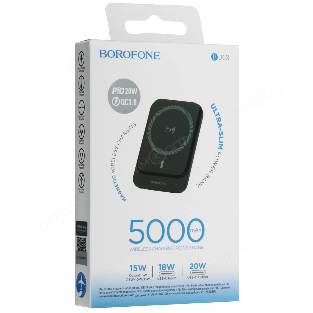 Внешний аккумулятор Power Bank Borofone BJ63, 5000mAh, PD20W, с беспроводной зарядкой, черный | Артикул: 6941991113925 | gsm-opt.ru