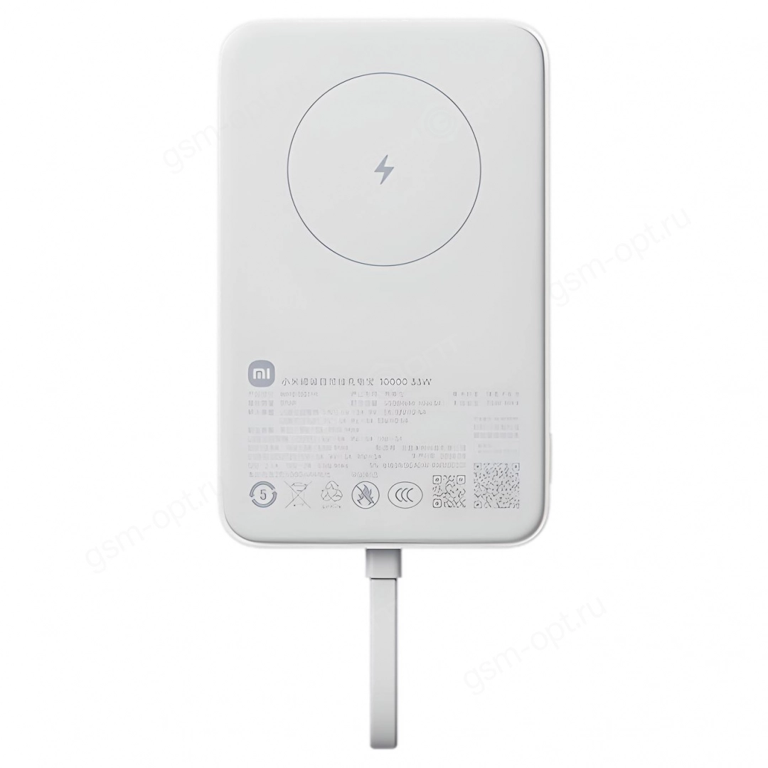 Внешний аккумулятор Power Bank Xiaomi Wireless Magnetic Power Bank, 10000mAh, 33W, со встроенным кабелем Type-C, с беспроводной зарядкой MagSafe для iPhone, WPB1007MI, белый