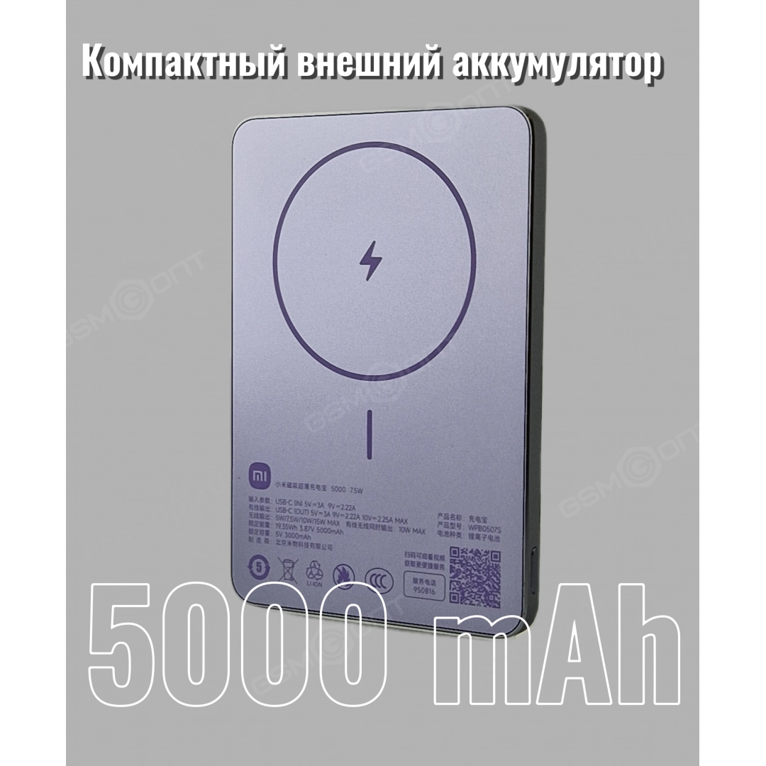 Этот портативный аккумулятор разработан, чтобы стать вашим незаменимым помощником в течение дня. Благодаря поддержке MagSafe, подзарядка iPhone становится максимально удобной и эффективной. Компактный корпус, выполненный в ультратонком формате, легко помещается в карман или сумку, не добавляя лишнего веса вашему смартфону. Забудьте о громоздких power bank – Xiaomi предлагает элегантное и практичное решение.