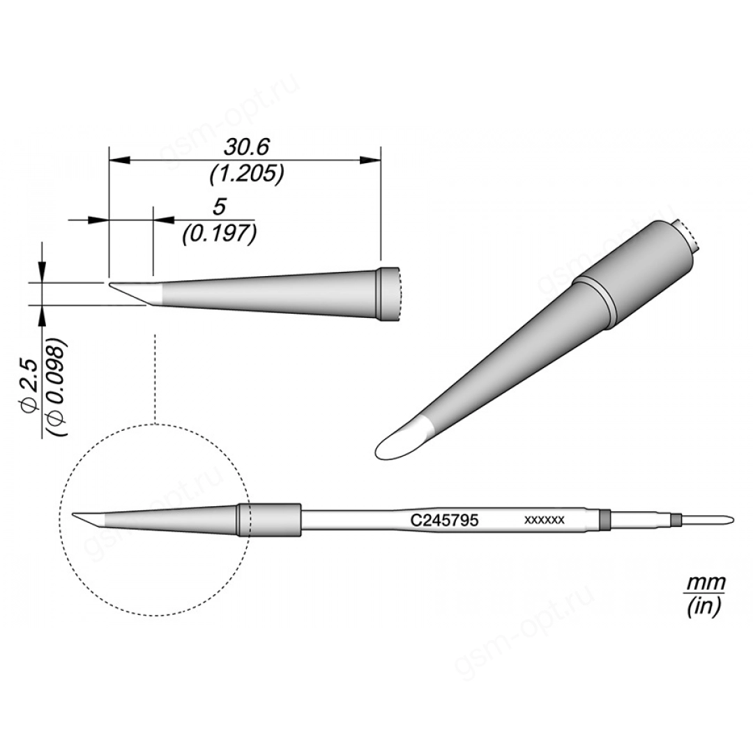 Жало Aixun C245-I030 для паяльника T245 паяльных станций JBC/ Sugon/ GVM/ Aixun (прямое)