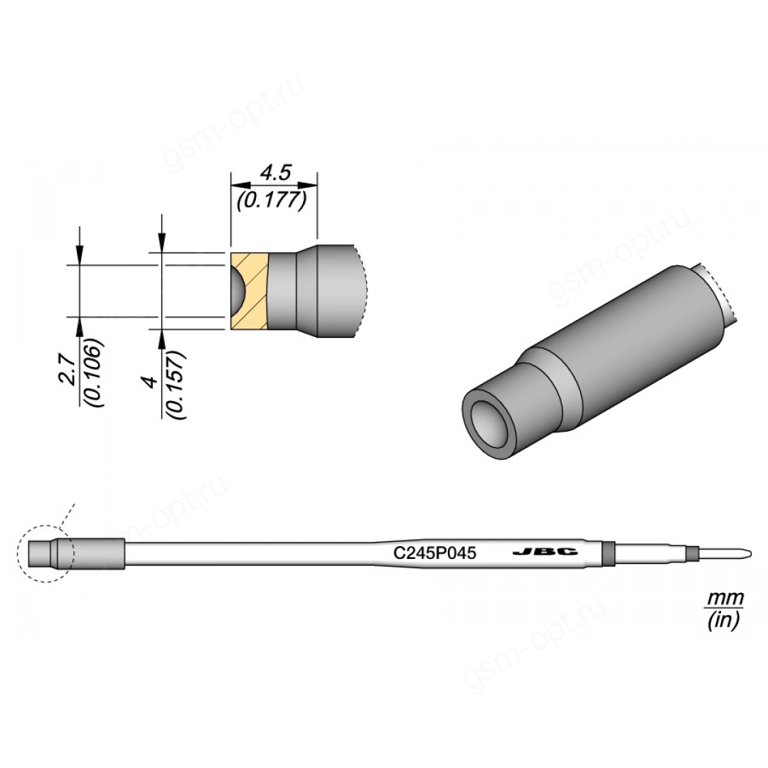 Жало JBC C245036 для паяльника T245 паяльных станций JBC/ Sugon/ GVM/ Aixun, оригинал