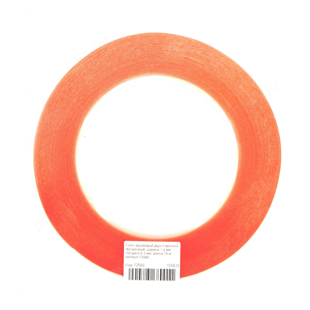 Скотч акриловый двухсторонний, прозрачный, ширина 1 мм, толщина 0.2 мм, длина 25 м