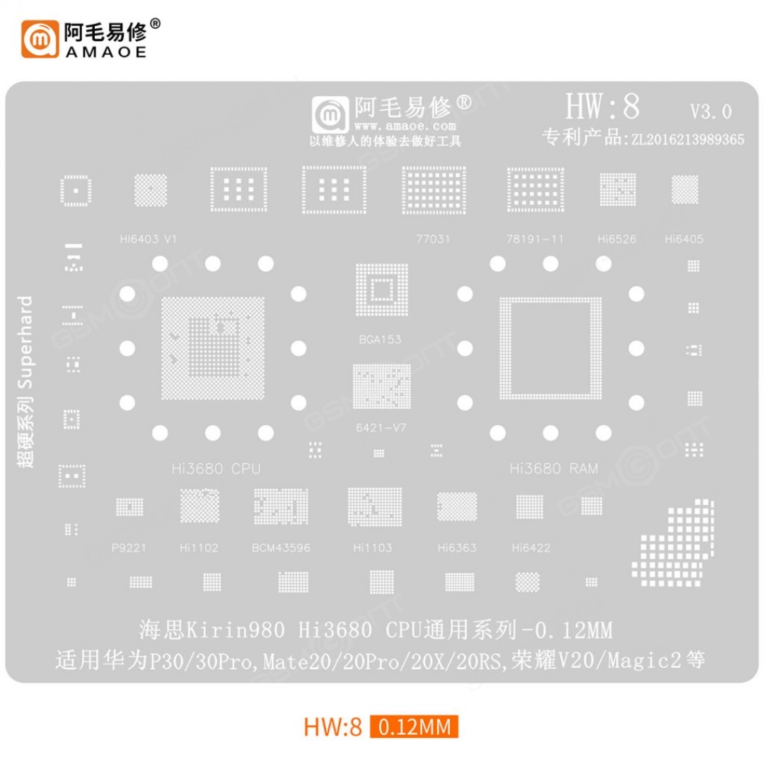 Трафарет Amaoe для Huawei HW:8 Kirin 980/ HI3680, Huawei P30/ P30 Pro, Mate 20/ 20 Pro/ 20X/ 20 RS, Magic 2/ V20 (T=0.12мм)