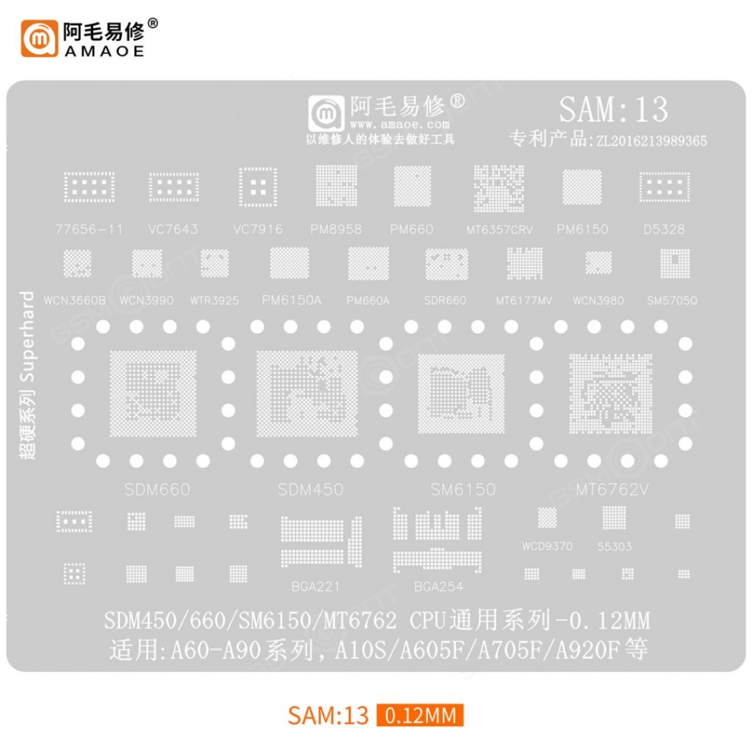 Трафарет Amaoe для Samsung SAM:13 SDM450/ SDM660/ SM6150/ MT6762V, A107F/ A605F/ A705F/ A920F (T=0.12мм)