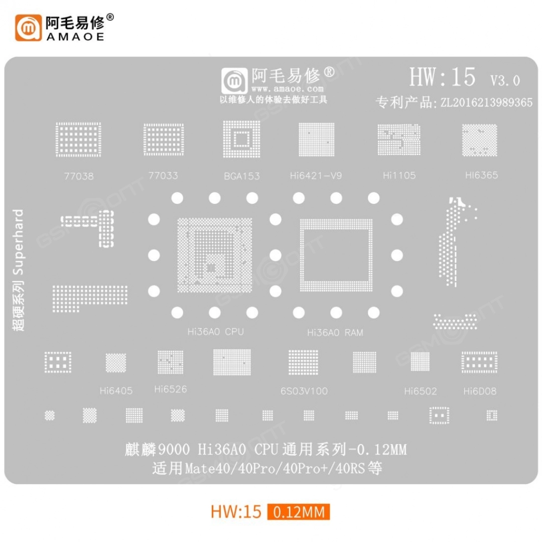 Трафарет Amaoe для Huawei HW:15 v3.0, Kirin 9000/ Hi36A0 (T=0.12мм)