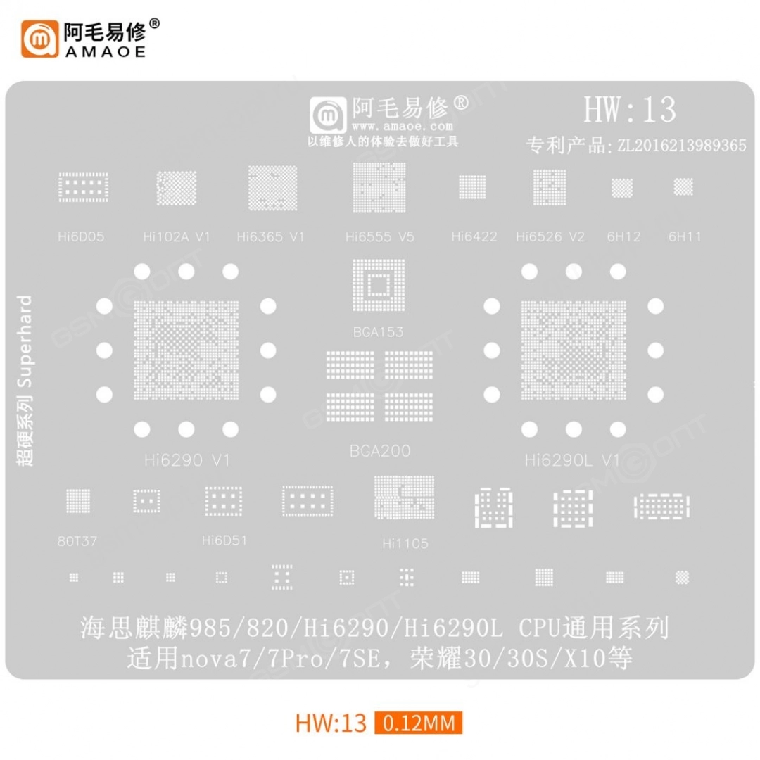 Трафарет Amaoe для Huawei HW:13, Kirin 985/ 820, Hi6290L (T=0.12мм)