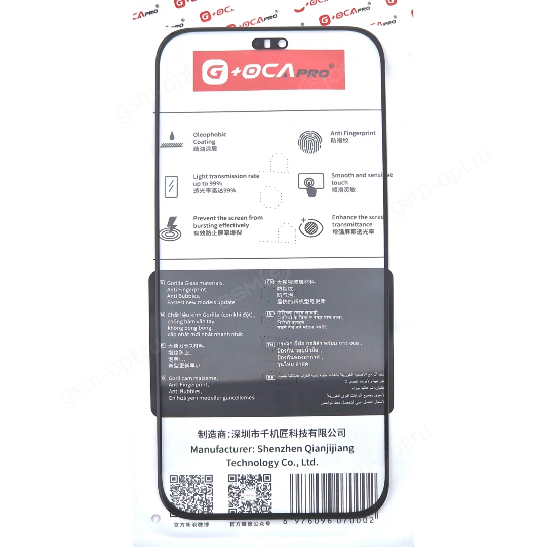 Стекло дисплея для переклейки для iPhone 14 Pro черный, с рамкой + OCA